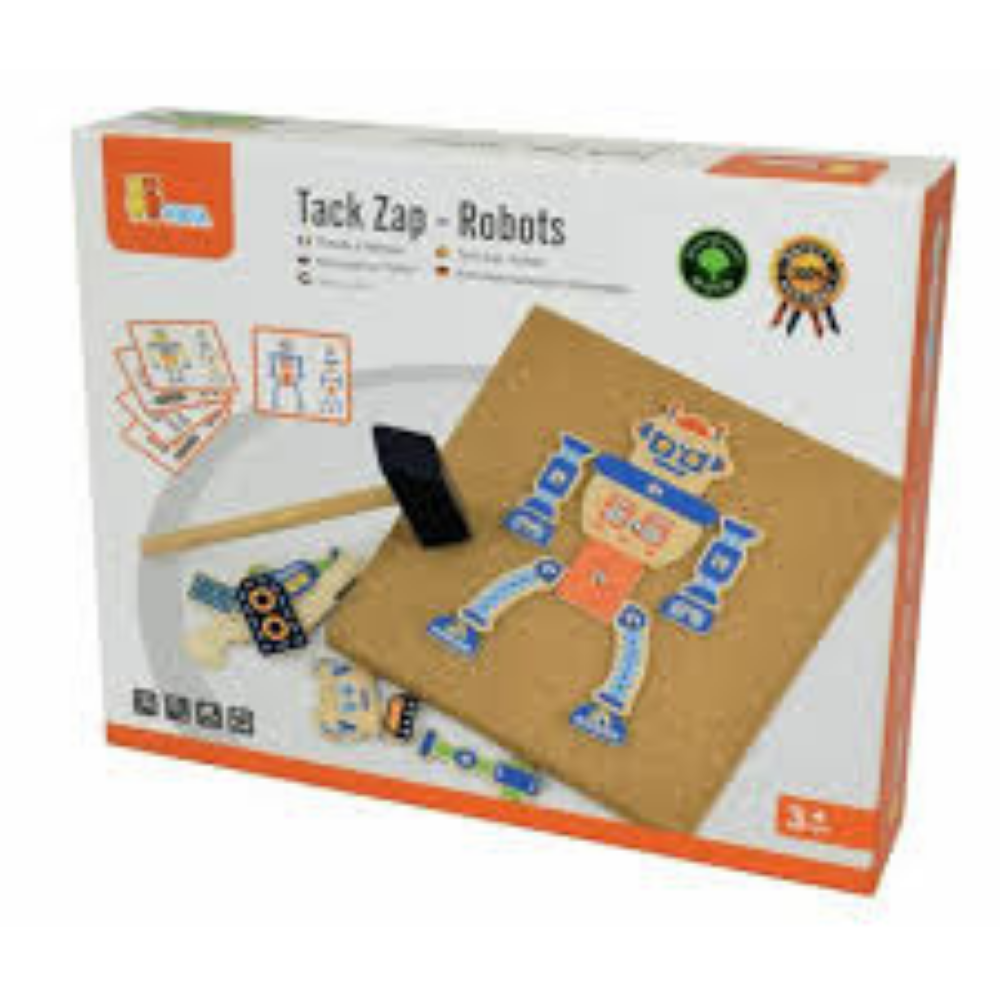 Unleash your child’s creativity with the Tack Zap Wooden Robots! This captivating playset is designed to provide hours of imaginative and interactive play. It includes 45 wooden pieces, a cork board, a hammer, and nails, allowing children to create their own unique robot designs. The set also comes with 10 double-sided copy cards to inspire creativity and provide guidance. Crafted from high-quality, eco-friendly wood, this durable set is built to last. The vibrant colors and realistic details make it a perfect addition to any playroom. Ideal for developing fine motor skills, hand-eye coordination, and imaginative play, the Tack Zap Wooden Robots is perfect for both home and classroom use. Let your child’s robot-building adventures begin with this fun and educational playset!